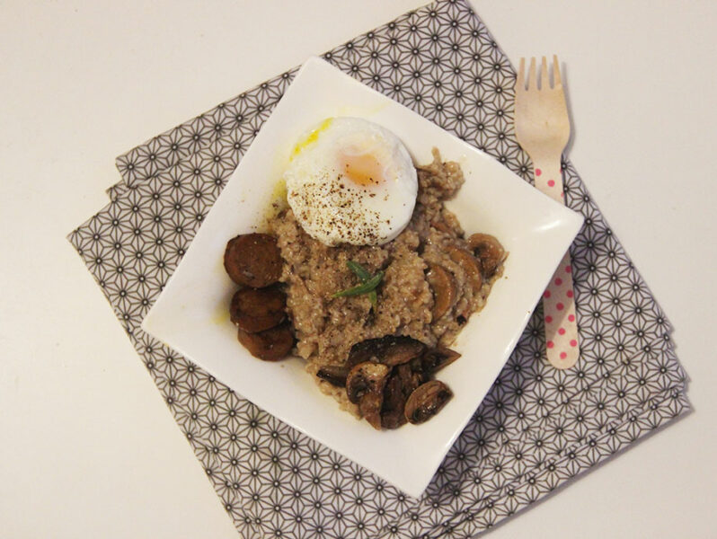 Porridge salé aux champignons et œuf poché