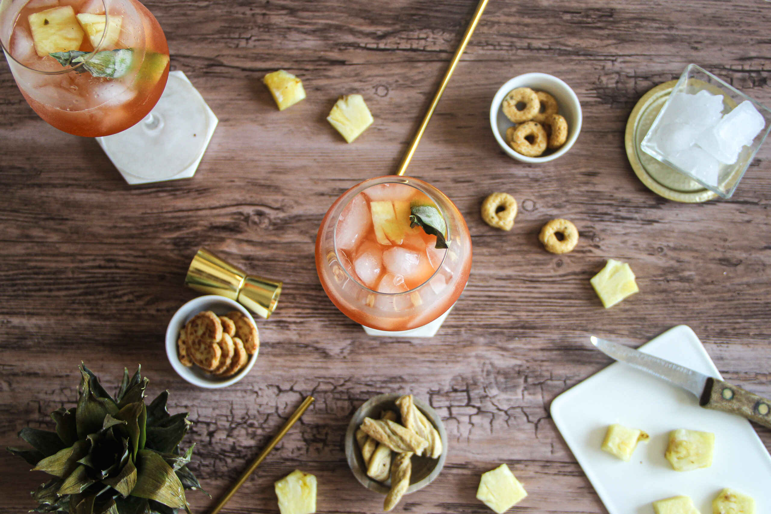 - Décorez si vous le souhaitez avec une fine tranche d’ananas frais ou un quartier d’orange sur le bord du verre.