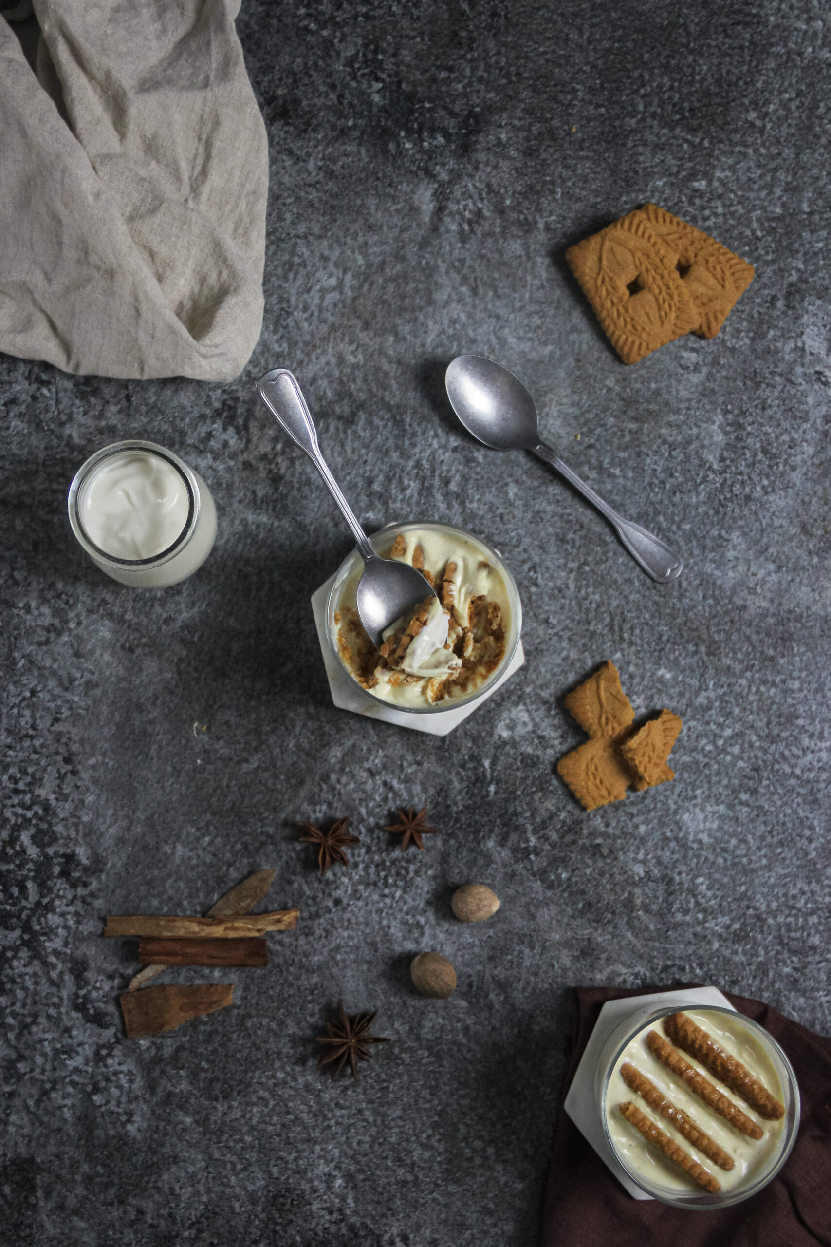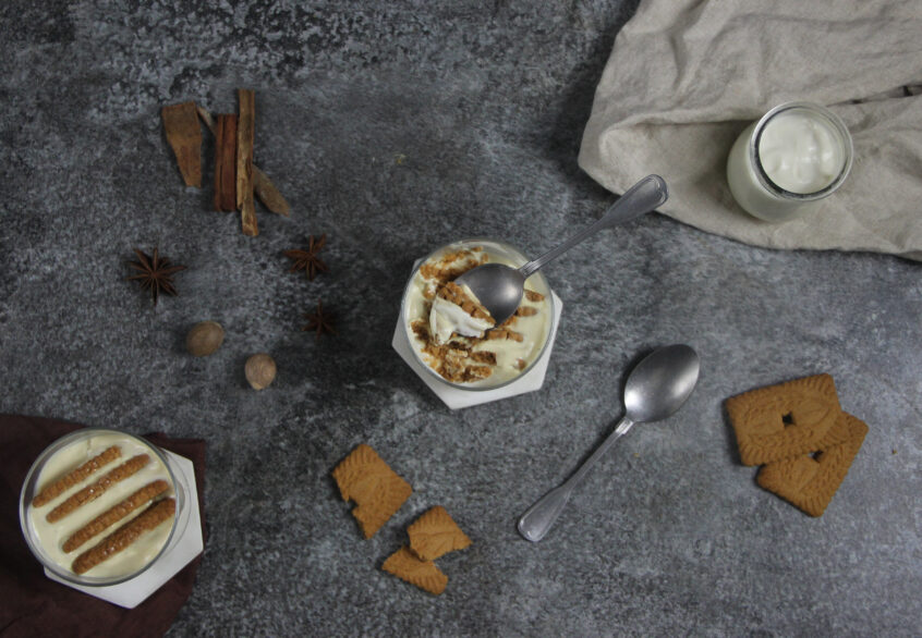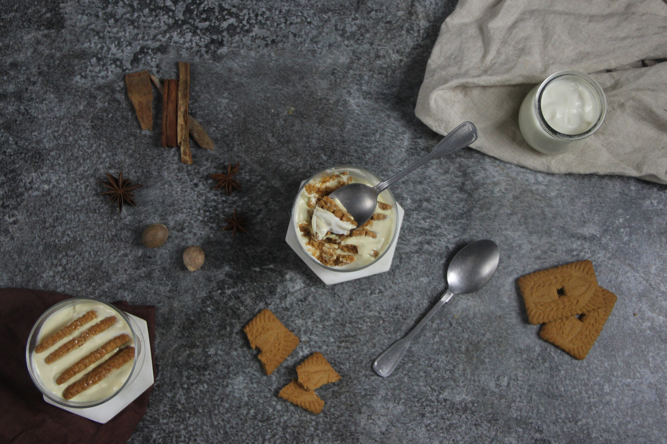 - Veillez à bien enfoncer les spéculoos dans le yaourt afin qu’ils soient entièrement recouverts et puissent bien ramollir pendant le repos.