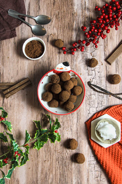 Enfin, préparer ces truffes est un petit moment de plaisir personnel. Façonner les boules, attendre qu’elles durcissent et enfin, les déguster est un vrai moment de satisfaction. Elles sont simples à faire mais font toujours leur petit effet, que ce soit pour soi ou pour partager. Elles sont parfaites pour offrir au moment des fêtes bien sûr, et elles séduiront particulièrement les papilles qui préfèrent la douceur à l’amertume du chocolat noir.