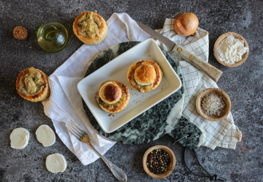 Il y a des jours où je me retrouve devant mon frigo à regarder les restes un peu tristes qui attendent d’être utilisés, et là je me dis : “Et si je faisais quelque chose de sympa avec ça ?” C’est exactement ce qui m’est arrivé avec ce petit bout de bûche de chèvre qui restait depuis quelques jours. Oui, je sais, il aurait été beaucoup plus simple de le mettre sur un morceau de pain et de le dévorer, mais j’avais envie de m’amuser un peu en cuisine et de créer quelque chose qui fasse plaisir visuellement et gustativement. Et puis, ça faisait un moment que j’avais en tête de réaliser des vol-au-vent maison. J’aime ce petit feuilleté rond avec son chapeau qui vient couronner la garniture : simple, mais élégant, parfait pour un repas réconfortant et un peu festif.