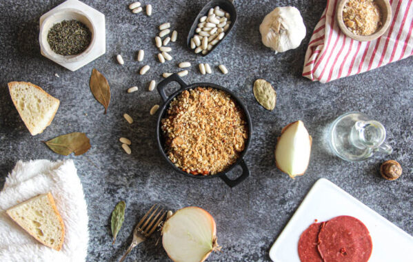 Le résultat s’est avéré plutôt sympa, mais la charcuterie végétale peut bien sûr être remplacée par une charcuterie classique, être supprimée, ou encore être remplacée par des petits dés de tofu, des champignons émincés… Bref, vous pouvez la remplacer par un peu ce que vous voulez qui donnera un peu de pep’s à cette recette.