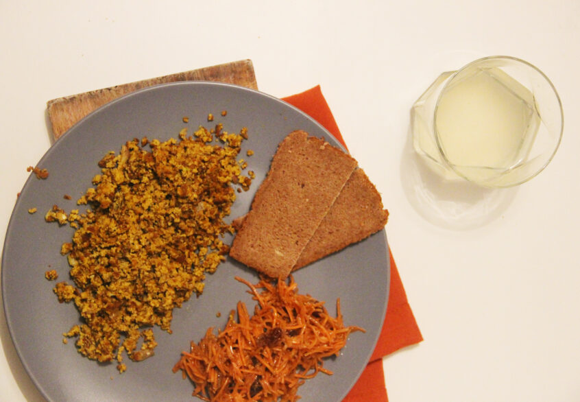 Ce que j’aime avec ce type de recette, c’est le côté assez ludique. Le tofu brouillé, c’est un peu un terrain de jeu. On part d’une base très simple, et on peut ensuite ajuster selon ses envies. La texture est intéressante à travailler : plus ou moins émiettée, plus ou moins sèche, plus ou moins crémeuse selon la cuisson et les ajouts. C’est assez amusant de voir à quel point on peut s’approcher d’une texture familière tout en restant sur quelque chose de végétal.