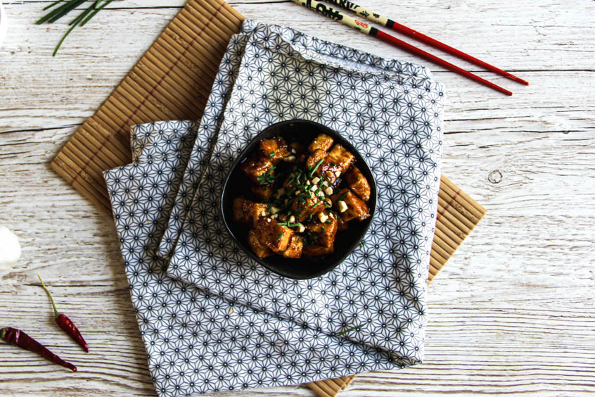 - Servez immédiatement pour profiter du contraste entre le tofu croustillant et la sauce parfumée.