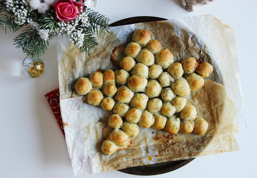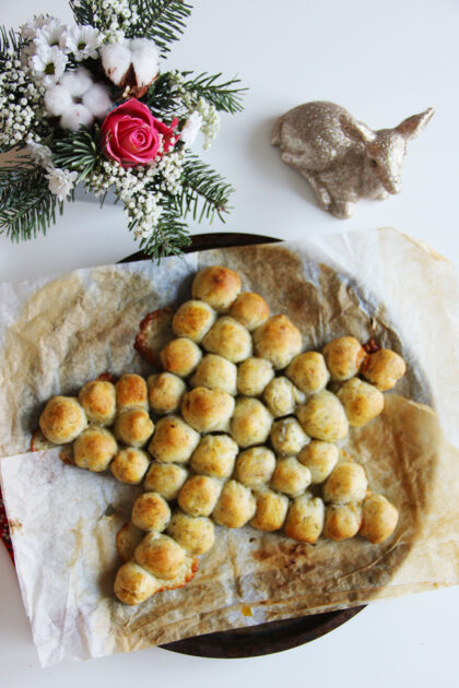 Ce pain est pratique : il se prépare presque entièrement à l’avance, demande peu de surveillance, ce qui permet de profiter de la compagnie plutôt que de passer la soirée derrière les fourneaux. Il s’adapte facilement selon ce que l’on a sous la main : pâte maison, fromage différent ou herbes de saison. Sa présentation en étoile lui donne un aspect de Noël, presque comme une décoration comestible sur la table.