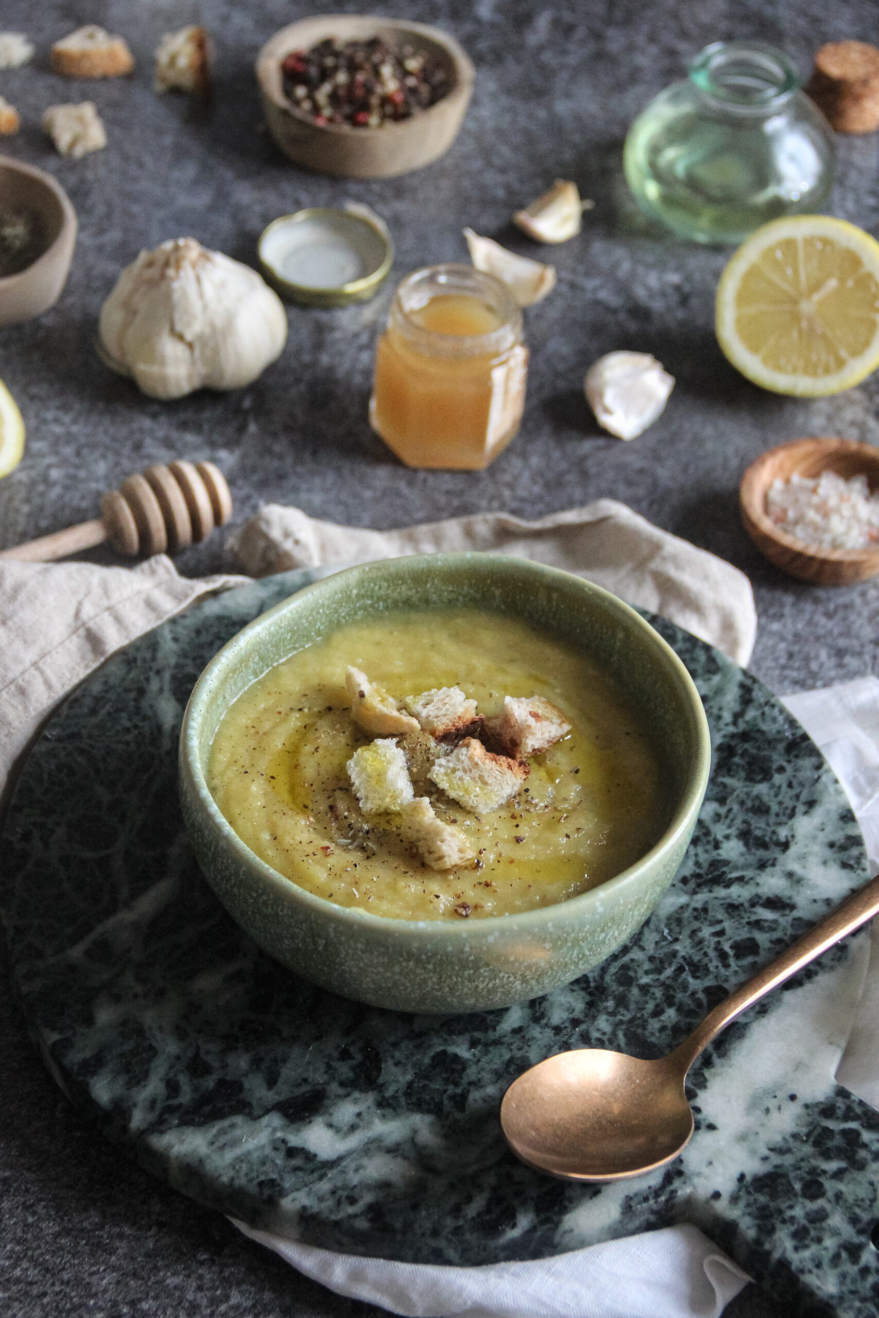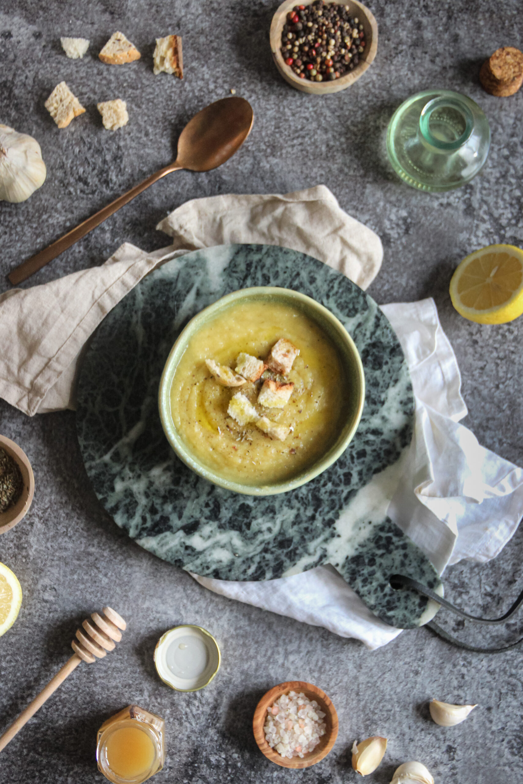 Le zeste de citron est une autre touche qui change complètement le plat. Il apporte une note de fraîcheur qui contrebalance le côté sucré du panais et du miel et rend le goût beaucoup plus vif. J’ai testé la soupe avec et sans zeste, et je trouve que l’ajout du citron transforme vraiment la saveur, même si ce n’est qu’une petite quantité.
